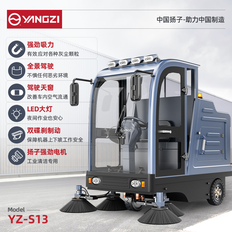揚(yáng)子掃地機(jī)YZ-S13,四組邊刷,持久續(xù)航,掃吸二合一,一鍵震塵開(kāi)關(guān) /掃吸二合一/大容量塵箱/爬坡能力強(qiáng)/揚(yáng)子電機(jī)/雙碟剎裝置